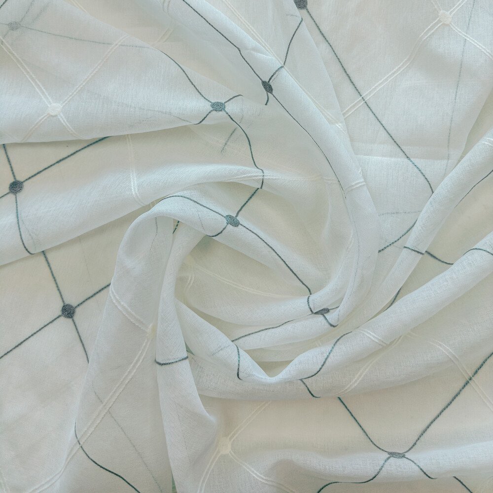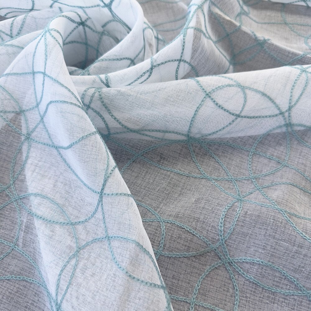 Австрийская штора лён кашемир голубой, карниз верёвочный