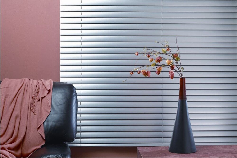 Алюминиевые горизонтальные жалюзи — солнцезащитные устройства, состоящие из поперечных алюминиевых планок (ламелей), которые можно поворачивать для регулировки света и поднимать для полного открытия.